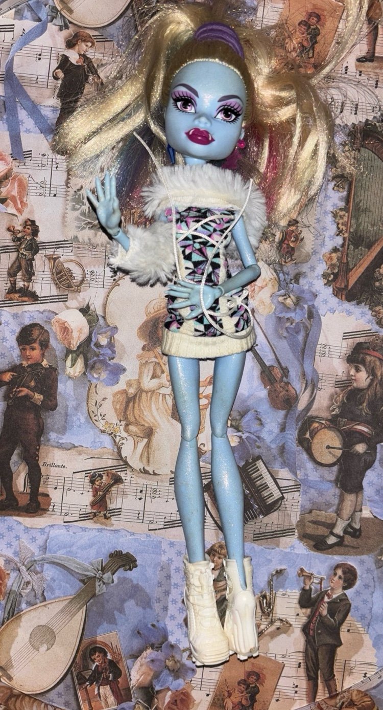 Abbey Bominable's appearance is as cool as her personality, featuring sparkling blue skin, long white hair with colorful streaks, and a winter-themed fashion sense. Her abilities include powerful cryokinesis, allowing her to create and manipulate ice, and increased physical strength. While adjusting to life in Scaremerica has been a challenge, Abbey Bominable has formed a reliable friend group, including Frankie Stein and Lagoona Blue, who help her navigate new social norms.