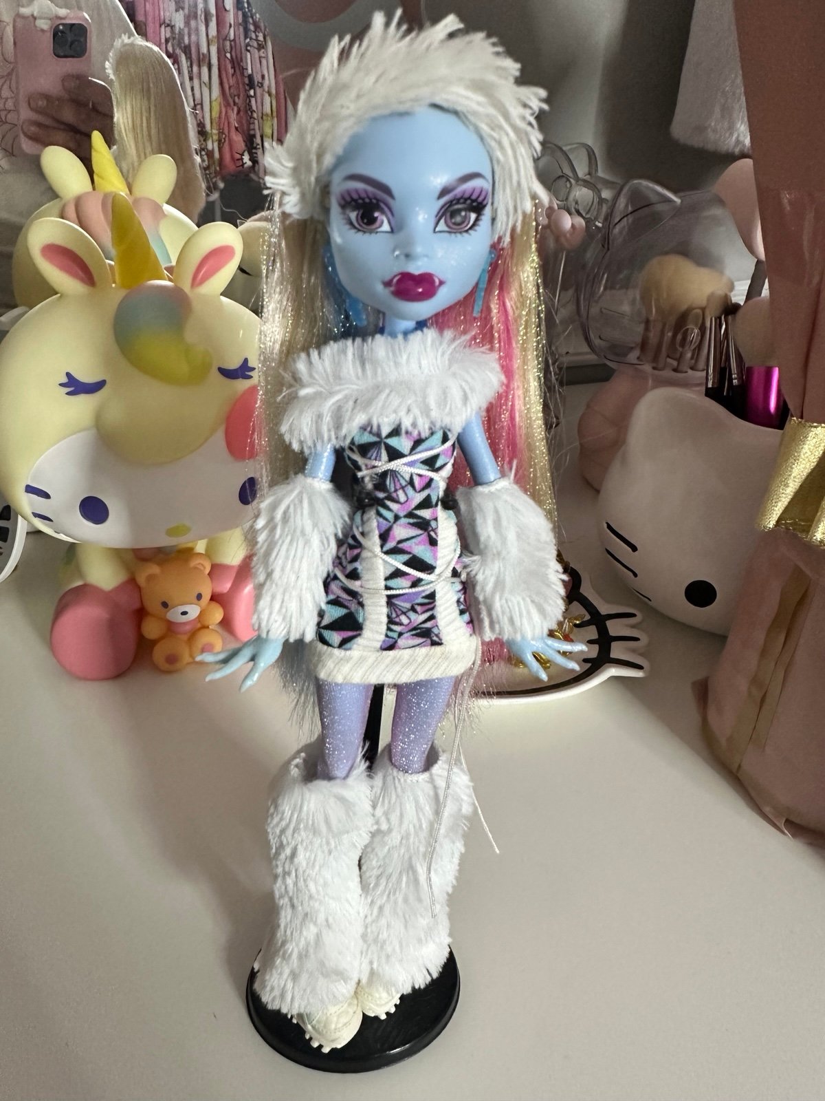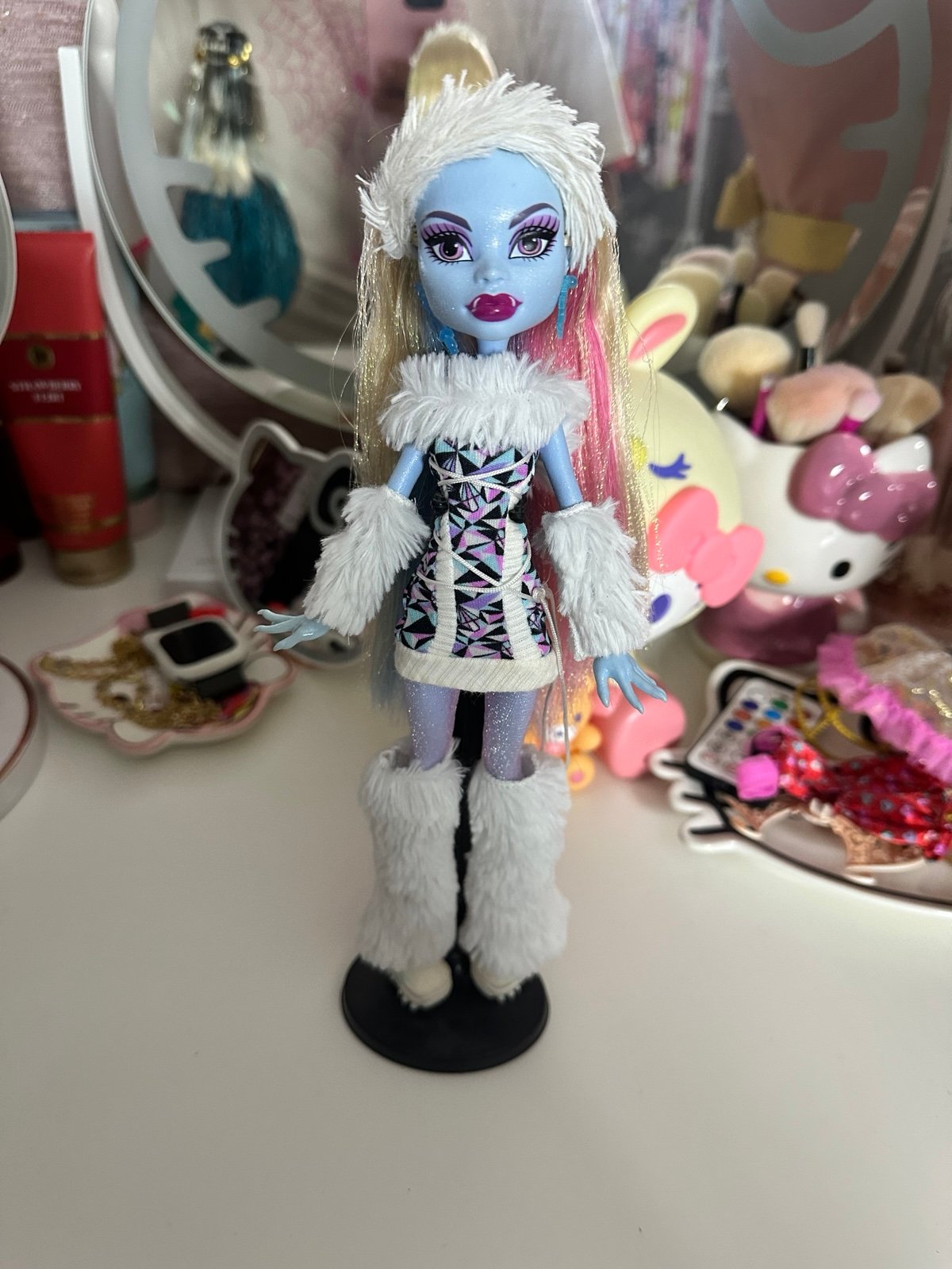 Abbey Bominable is a yeti exchange student from the Himalayan mountains who enrolled at Monster High at the request of family friend Headless Headmistress Bloodgood. As a proud and straightforward ghoul, Abbey Bominable often speaks her mind without filter, which can lead to amusing cultural misunderstandings. Despite her intimidating physical and psychokinetic strength, Abbey Bominable is, at heart, a loyal friend who values her connections at the school.