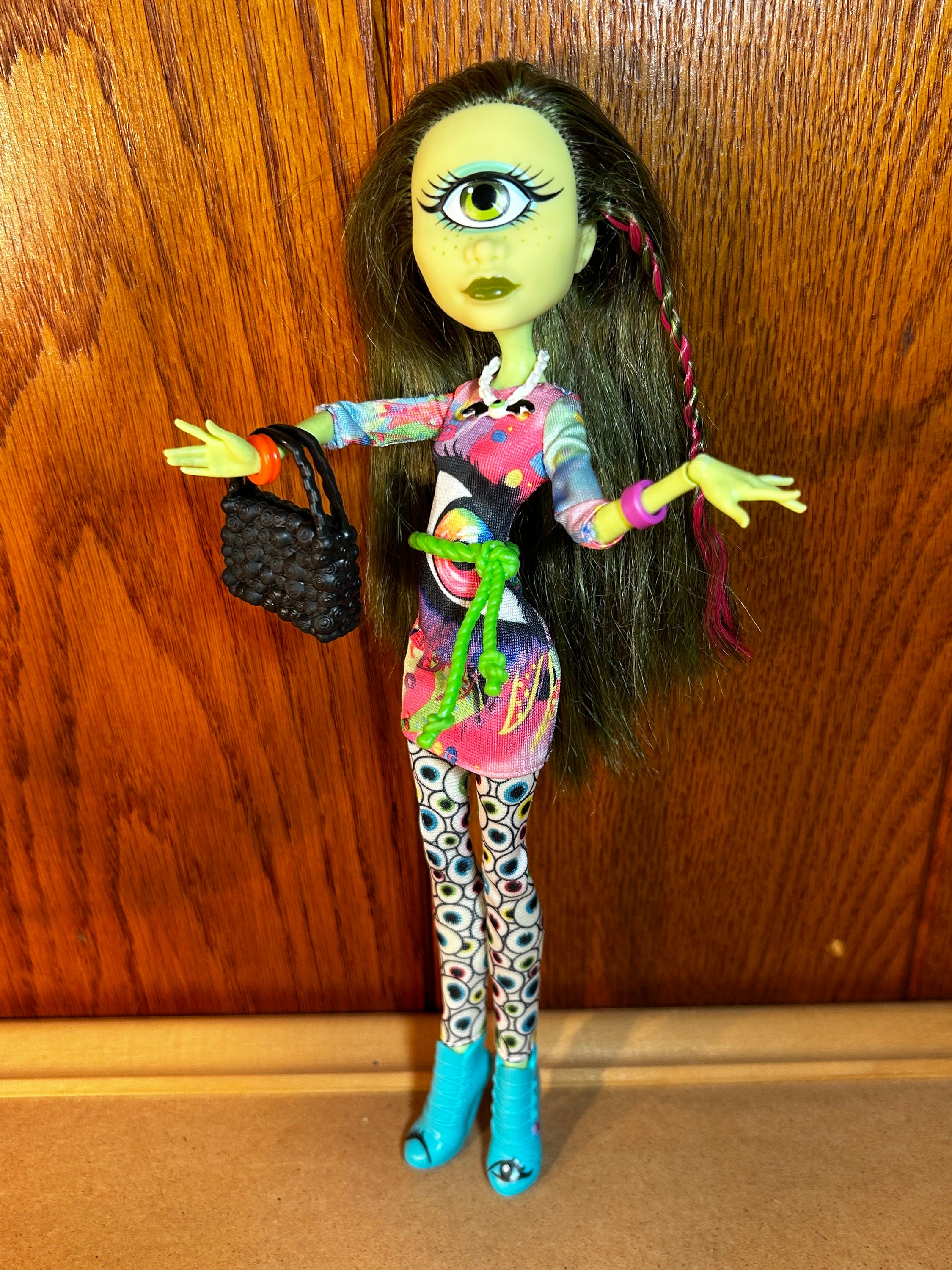 Iris Clops is a distinctive student at Monster High, carrying the legacy of the Cyclops as her monster heritage. As the daughter of the legendary one-eyed giant, Iris possesses a single, large and expressive eye that gives her a unique appearance among her peers. Her gentle demeanor and quiet presence make her a thoughtful addition to the school's diverse community of monsters and ghouls.