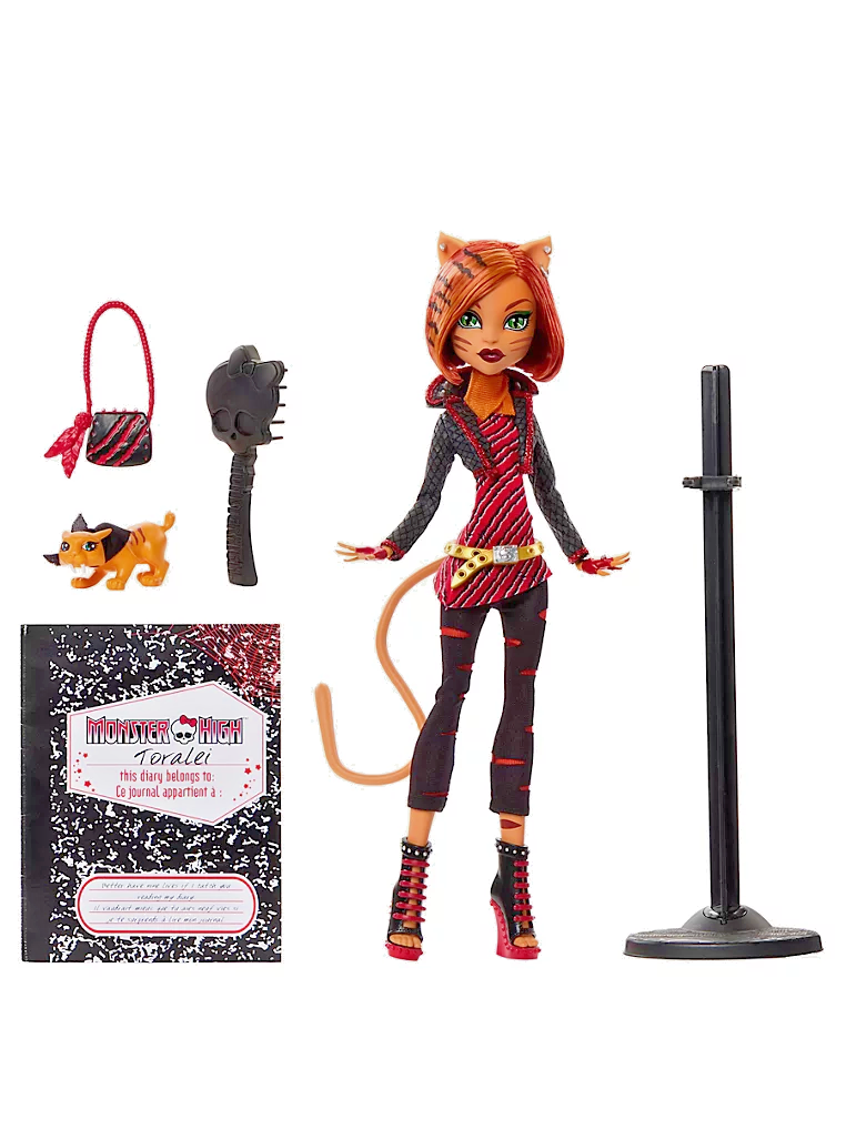 Toralei's signature style blends bold orange & black colors with edgy accessories and statement pieces. Her fashion-forward attitude makes her a trendsetter among the student body. She shares the halls of Monster High with other iconic monsters like Clawdeen Wolf and Frankie Stein, often finding herself in friendly fashion competitions.